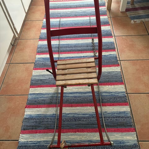 Äldre kälke. Dalpilen, bricka finns kvar. Fungerar bra. Finns även broms. Jag har använt den till att dra barnen på isen men går säkert att använda i backen med.
