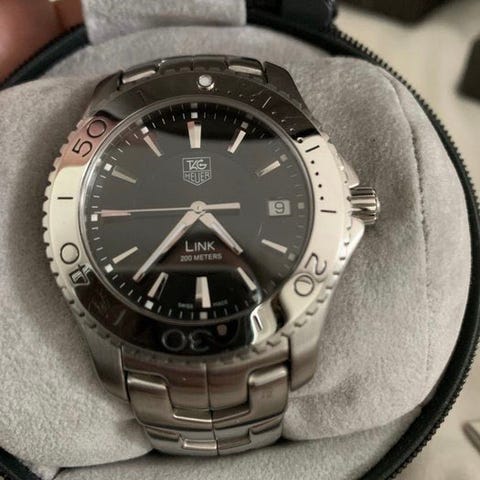 TAG Heuer klocka med tvåfärgad stållänk och boett. Klockan har en rund urtavla med datumvisning och roterande bezel. Materialet är rostfritt stål med guldfärgade detaljer. Tillverkad tidigt 90 tal och med det i åtanke så är den i mycket fint skick. Fungerar felfritt!