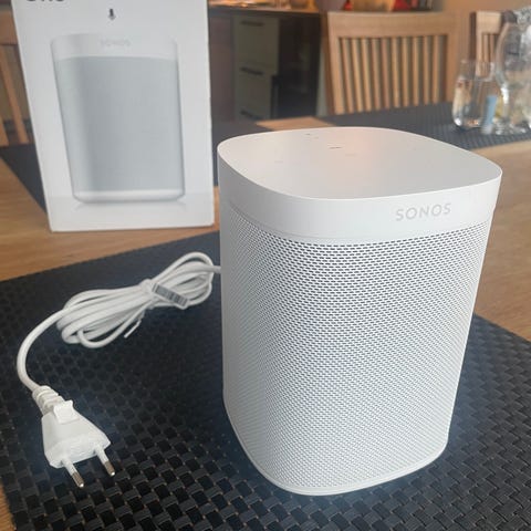 En i princip oanvönd Sonos one med 2 väggstativ.