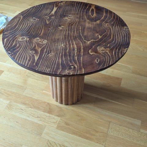 Ilva Almträ design bord. Nypris: 6000 kr. Använt i några år men har tagit hand om det och oljat de vartannat år som skyddat det.