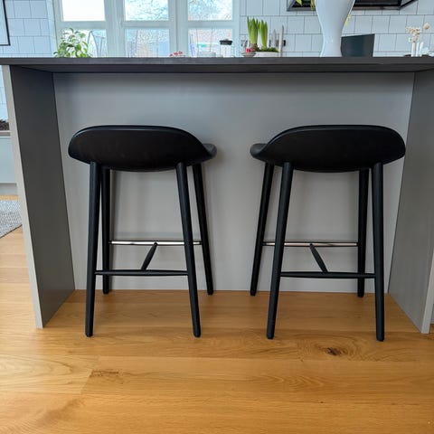 Svarta barstolar från Stolab model Allegro. Sitthöjd 75 cm. 1000 kr/st. Alla tre för 2500 kr.