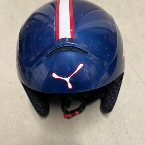 Slalomhjälm för barn, med fäste för skidglasögon. Vadderad vid öron.