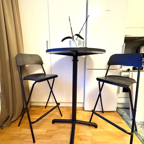 Säljer mitt bord från ikea med 4 stolar jag ärvt.