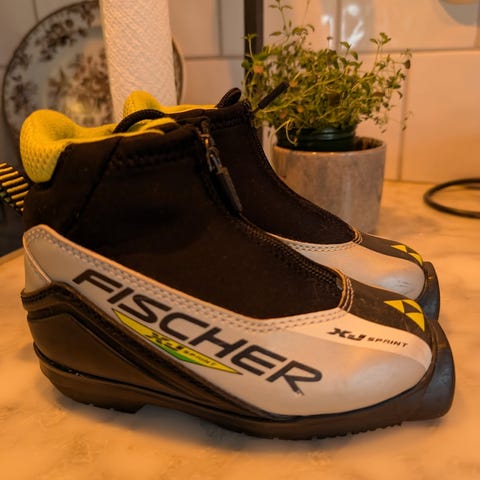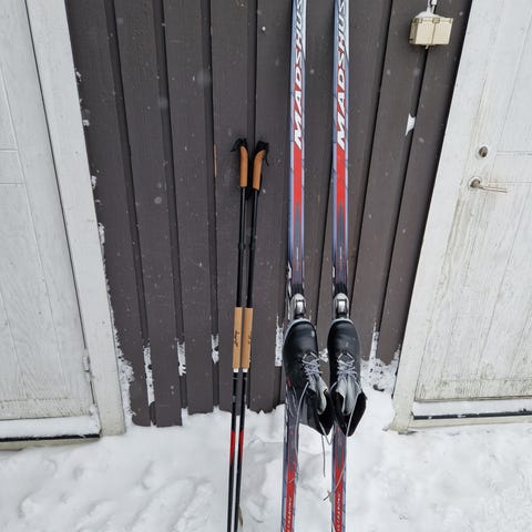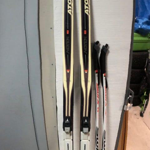 Skidor och pjäxor är i bra skick, använt endast någon enstaka gång.