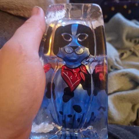 Religiös dekorationsfigur med glasmonter som visar de tre vise männen och Jesusbarnet. Figuren är placerad på en dekorativ bas och täckt av en glasdom. Passar för religiös eller julrelaterad inredning.