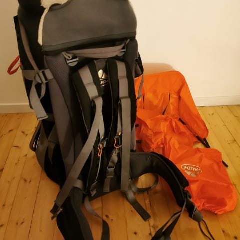 Bärryggsäck med regnskydd och bra förvaring. Sparsamt använd