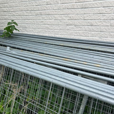 Trästege med metallbeslag. Stegen är tillverkad av trä med metallbeslag för stabilitet och hållbarhet. Den har en rektangulär form och flera steg för att underlätta klättring