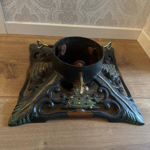 Julgransfot i gjutjärn. Ca 27x27 cm. Tung och stabil.