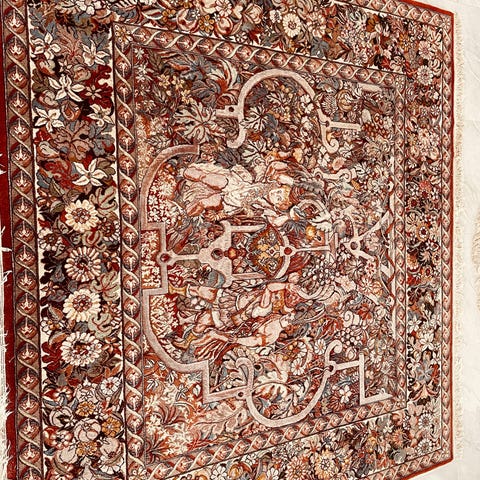 Handvävd persisk ”tavelmatta”, har även invävda silkestrådar. 70x86 cm.