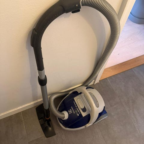 Electrolux Classic Silence dammsugare i vitt. Utrustad med slang och munstycke. Passar för allmän rengöring av golv och mattor.