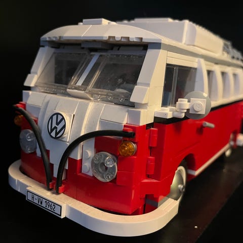 LEGO Creator buss byggsats i rött. Setet består av bitar för att bygga en dubbeldeckarbuss och är lämpligt för barn från 7 år och uppåt.