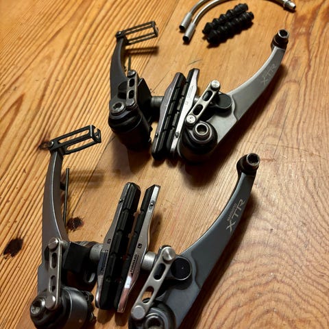 3x8-speed XTR-”brifters” i riktigt bra skick. H&L-markeringarna är lite slitna och två mindre skrapmärken på ovansidan, annars toppen och funktionellt i toppskick. Finns i Gävle men kan skickas spårbart.