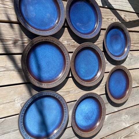 1 st med grå blå dekor höjd 8 cm, diameter 19,5 cm