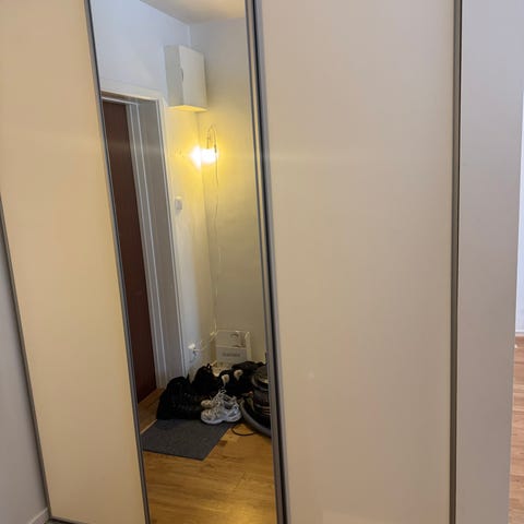 Två av skyttdörrar är tapetserade, men tapeten kan enkelt tas bort om så önskas.