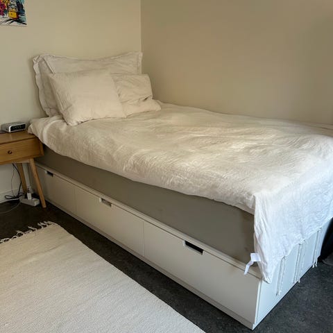 Bäddmadrass ingår ej, men madrassen medföljer.