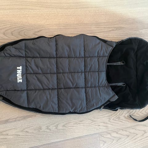 Thule barnvagnsåkpåse i svart färg. Passar för att hålla barnet varmt och skyddat under promenader i kallt väder. Endast använt ett par gånger.