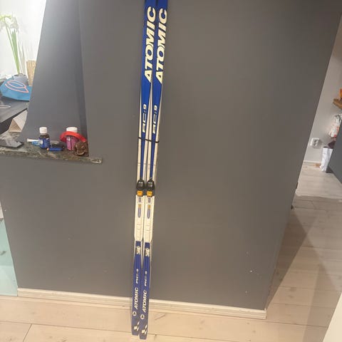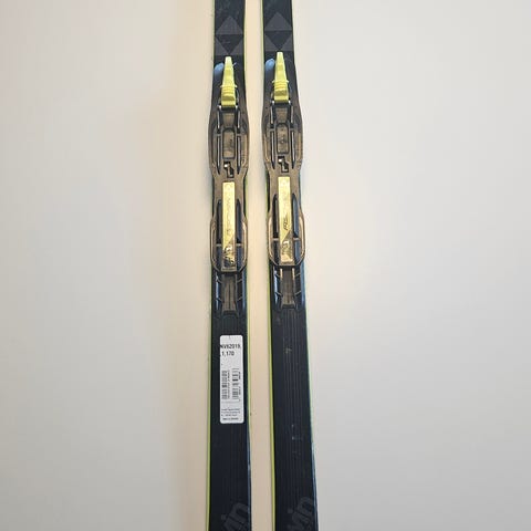 Skidorna är sparsamt använda men ena skidan har gulnat något på översidan.