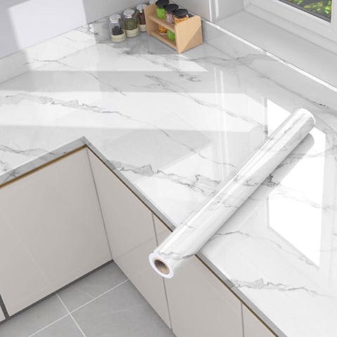Oöppnad dekorplast marmor + vit