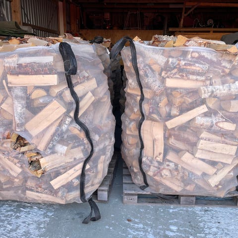 Torr ved i 1,5 m3 säck. Längd ca 30 cm.