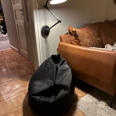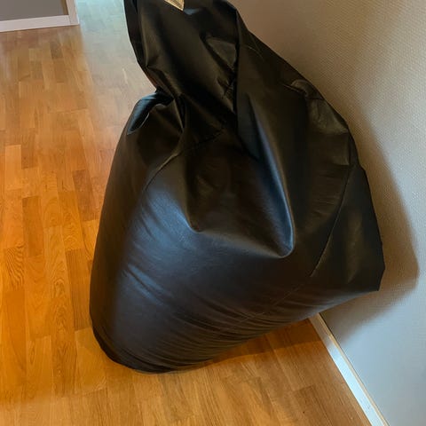 Knappt använd svart saccosäck från Jysk, blir ett litet ryggstöd när man sätter sig i den . Nypris 1000kr perfekt till tonårsrummet.