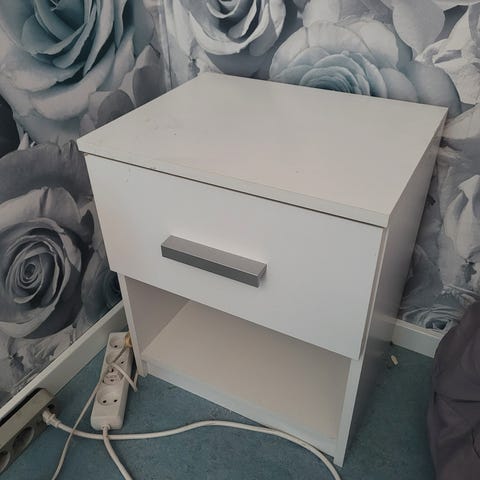 Sängbordet har en låda och en hylla med gott om förvaring. Helt nytt och inte använt.