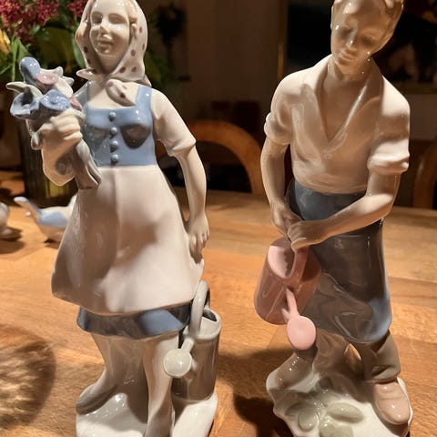 Figuriner pojke och flicka i porslin vintage