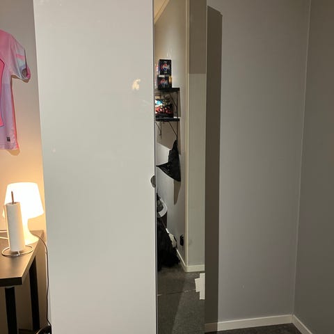 Garderoben har varit monterad med en annan garderob, märken finns på den sida där skruvarna har suttit. Den andra sidan av stommen har inga märken. Finns i ett rök- och djurfritt hem. Hämtas i Gubbängen, bärhjälp kan ej ges.