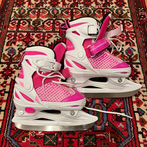 Fina barnskridskor Rookie 4, som man kan justera så man kan änvända dem från stl 29 till stl 32. Endast använda ett fåtal gånger så i mycket fint skick. Ett litet märke som syns på bilden. Med kartong.