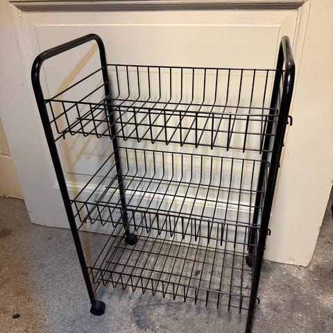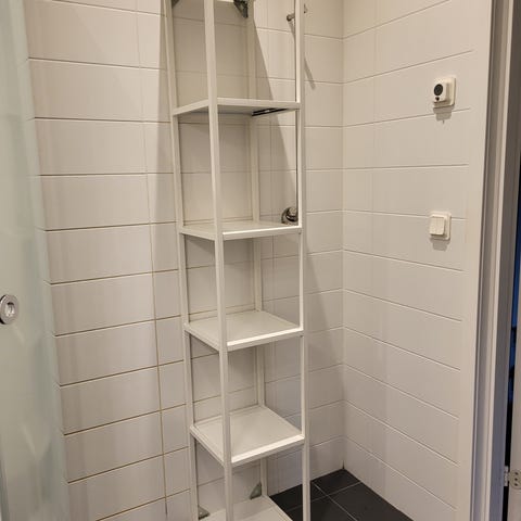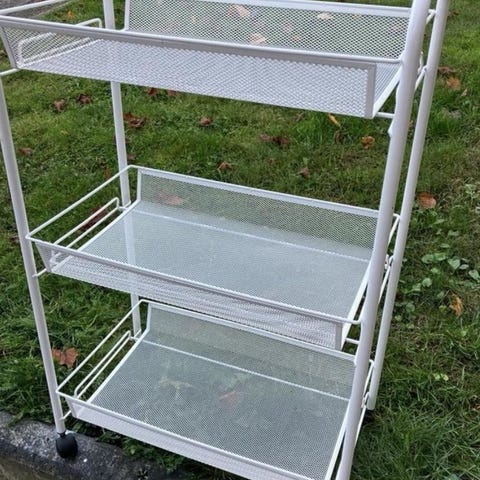 Badrumshylla/rullvagn i vit plast, serie Ikea Vesken med 2 hyllor, H40x17Dx53L