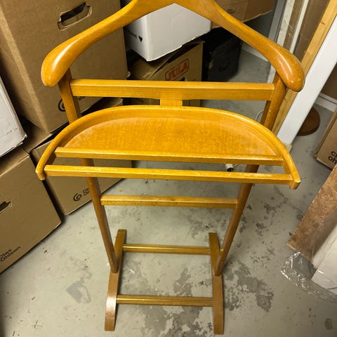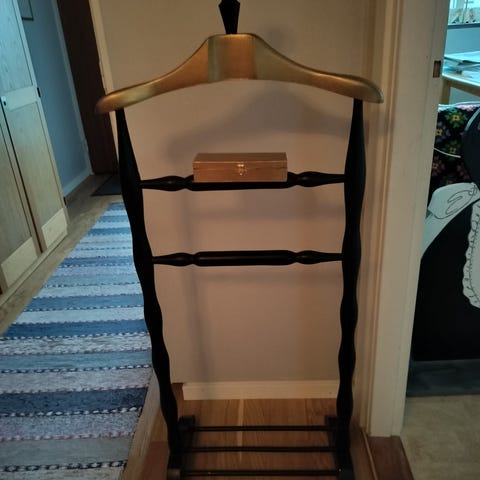 Herrbetjänt mässing & trä. Märkt Brevettato, Italien. Bredd 45 cm, höjd 105 cm.
