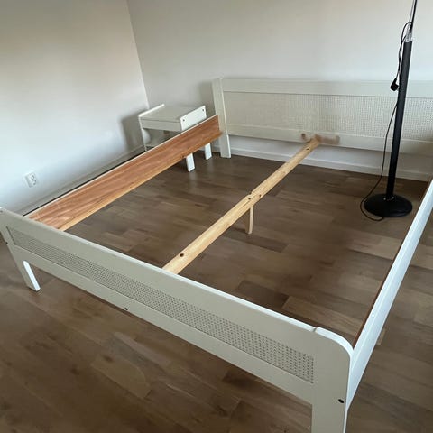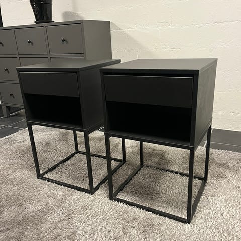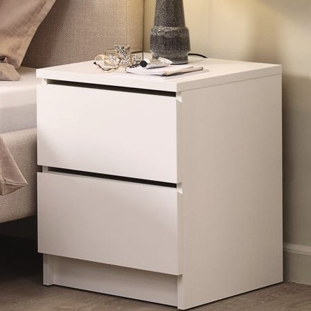 Sängbord i vitt, med en låda och ett hyllplan. Säljes på grund av flytt. Höjd: 70cm, bredd: 46cm, djup: 35cm