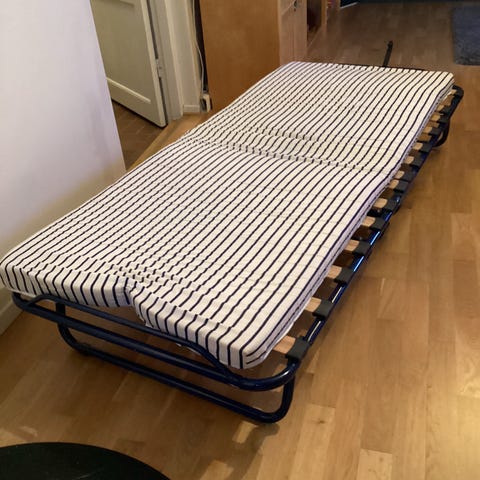 Extrasäng som tar liten plats att förvara – förvaringspåse ingår.