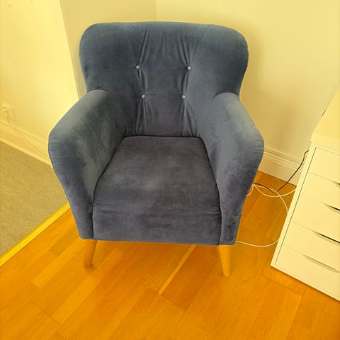 Nypriset var 2895kr när jag köpte den. Den har bara stått framför sminkbordet men katterna har använt den och på något sätt lyckats göra ett litet hål i den (se bilder) men annars väldigt fin kvalitet.