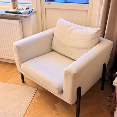 Vi säljer vår fina och mycket bekväma fåtölj från IKEA på grund av platsbrist.