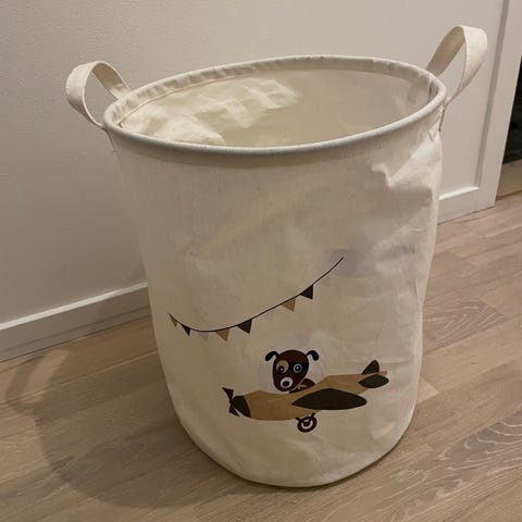 Papperskorg med fjärilsmotiv. Mått höjd 30 cm och diameter 24 cm. Lite nött nertill på vissa ställen annars i fint skick.