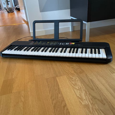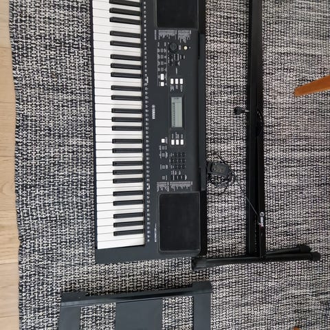 Nu har tösen bestämt sig för att inte fortsätta spela piano via skolan längre. Här finns chansen att köpa ett i princip helt nytt Yamaha PSR-EW310. Finns såklart stativ & pall också som ingår! PSR-EW310 har precis samma specifikationer som det mindre syskonet PSR-E373, men ett klaviatur på 76 tangenter. Det bredare omfånget är en fördel då man spelar vissa pianostycken. Även om det är tänkt för nybörjaren har det förvånansvärt bra ljud, rytmer och komp för sitt prisläge. 76 anslagskänsliga tangenter för ett uttrycksfullt spelande, nya effekter och även Super Articulation Lite ljud. Lär dig spela via dem inbyggda lektionssystemen eller koppla ihop dig med dator, telefon eller läsplatta. PSR-EW310 har mängder av funktioner, men är också mycket lätt att använda. Om du behöver öva tyst kopplar du in dina hörlurar.