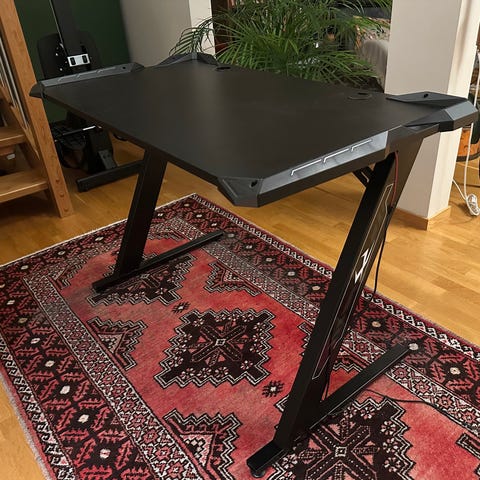 Jysk gamingbord i svart färg med Z-formade ben som bidrar till att bordet är väldigt stadigt. Bordet har en yta med hörnskydd och inbyggda USB-portar. Designat för spel och datoranvändning, med kabelhål för bättre kabelhantering. Nypris 1.799 kr.