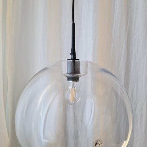 Vi säljer tyvärr vår taklampa Capo från Belid, 40 cm i diameter och opalglas.