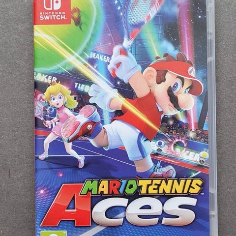 Nintendo Switch Mario Tennis Aces spel. Ett sportspel där spelare kan delta i tennismatchar med olika karaktärer från Mario-universumet. Är öppen för prisförslag.