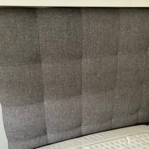 Bilderna är tagna före och efter flytt, därför är bäddmadrassen och benen inte med på samma bild. Sängbenen är nu avmonterade för att underlätta transport.