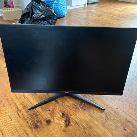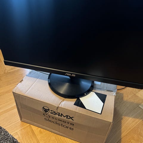 Asus 24-tums datorskärm i vit färg. Skärmen har en modern design med en rund fot och anslutningar på baksidan. Kommer med original strömkabel och hdmi kabel.