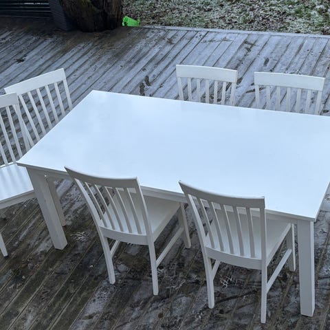 Bordet har en iläggskiva så längden kan vara 230cm eller 180cm.