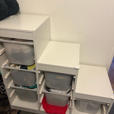 Säljer en helt ny och oanvänd leksaksförvaring med tillhörande förvaringslådor/backar, kan även kompletteras med hyllplan i serien trofast. Kan t.ex. användas till att förvara barnens leksaker eller böcker och blir som en inredningsdetalj i barnrummet/hemmet.