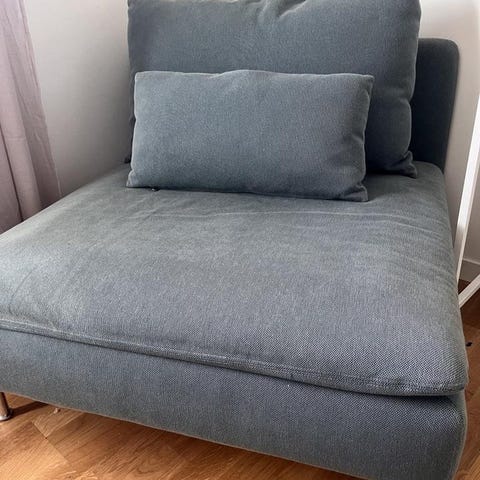 Har stått i rök och djurfritt hem. Perfekt som ensam fåtölj eller bygga ihop fler delar av Söderhamn soffsystem.