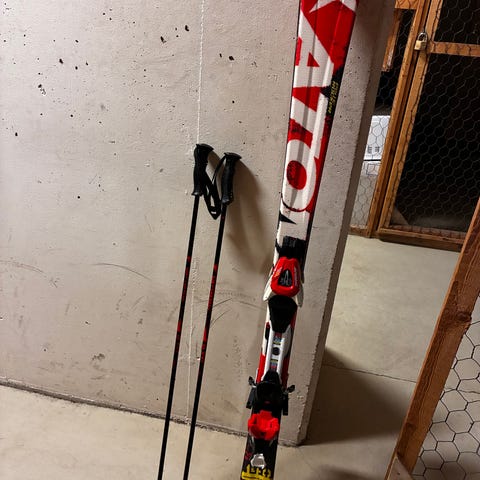 Skidor Salomon the Lux jr, 140 cm. Endast ytliga repor. Ställbar bindning Salomon. - 900 kr.