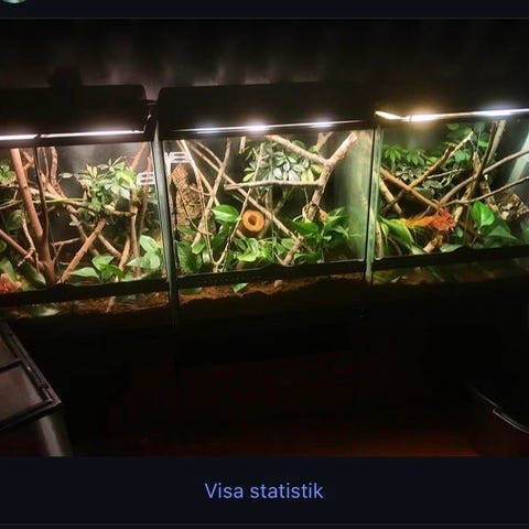 Jag vill salja min leopard gecko tillsammans med terrariet för att nu jag har inte vart hålla henne längre hon mår bra allt är okej hon bajsar äter mat hon tar också vitaminer vilket hon behöver och tillbehör två hus en röd varm lampa med en vit uvb och jag kan ge grejer som jag har extra