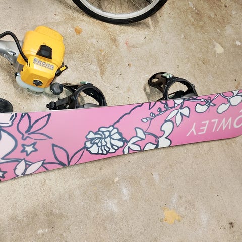 Snowboarden är sommarvallad som nu är avsicklat och borstat. Snowboarden är som ny och redo för nya äventyr.