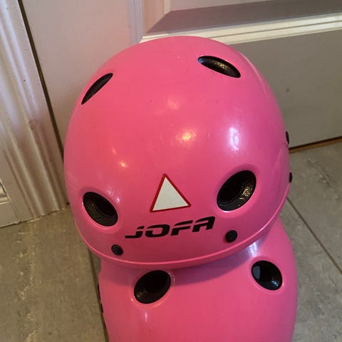 Hjälm med fodring. Rosa. Passar ca 1-2 åring.