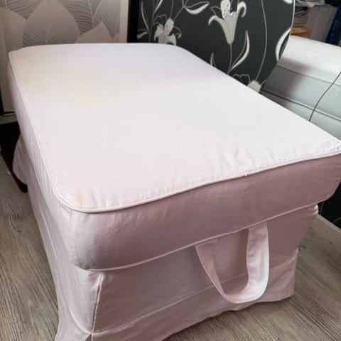 En fint rent Ektorp fotpall med förvaring i vit färg från IKEA i bra skick sparsamt använt.