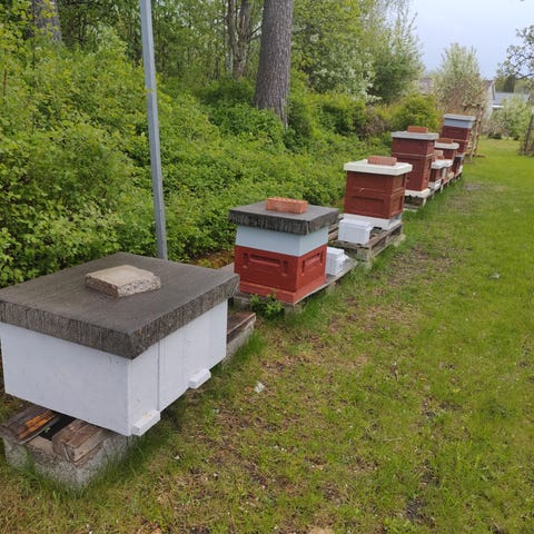 ✔ Varje samhälle levereras med 10 ramar, kupa, botten och tak – klart att ställas ut direkt i bigården.